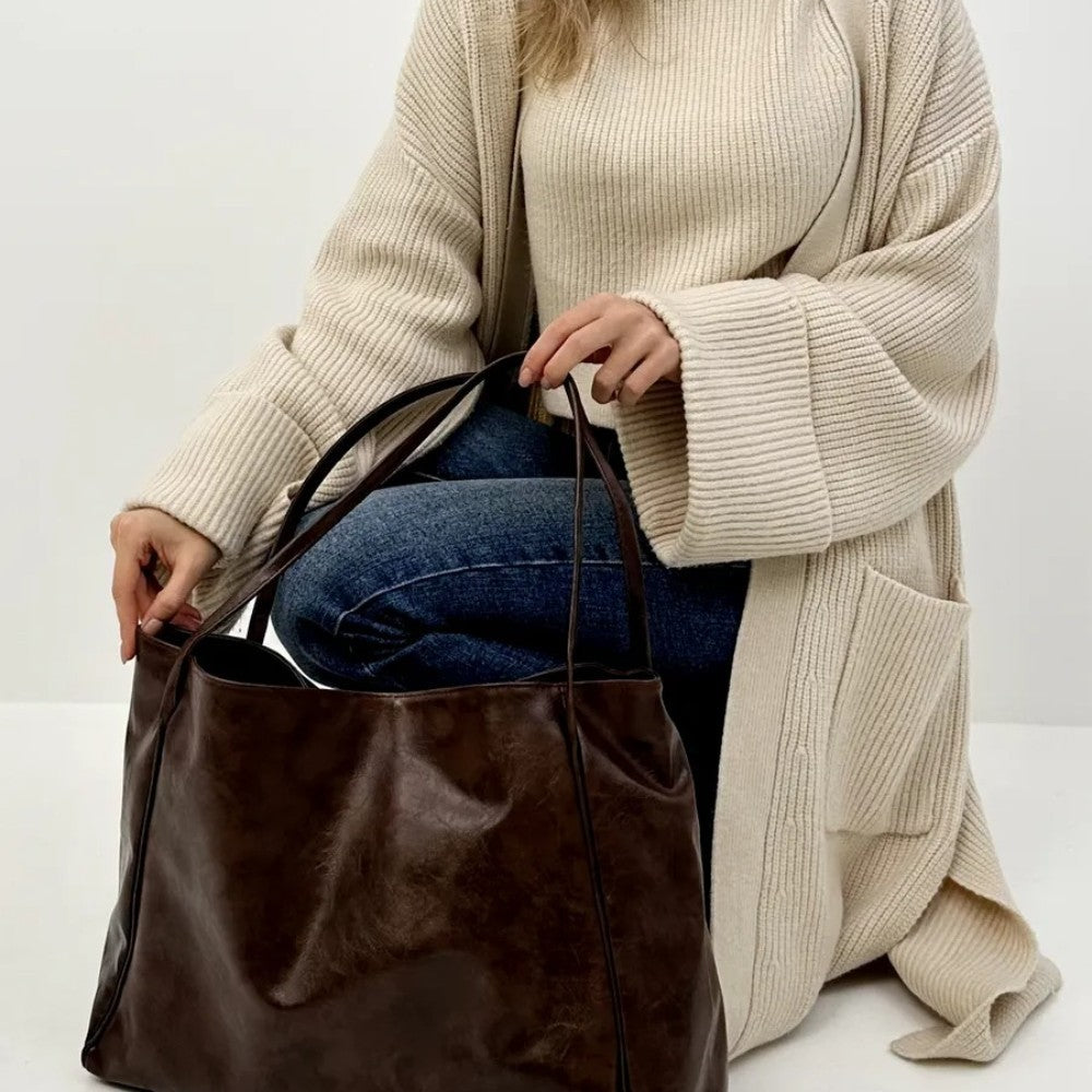 Wykonana z wysokiej jakości skóry roślinnej i zaprojektowana tak, aby była na tyle pojemna, by pomieścić Twój laptop, notatnik oraz całą kolekcję makijażu.