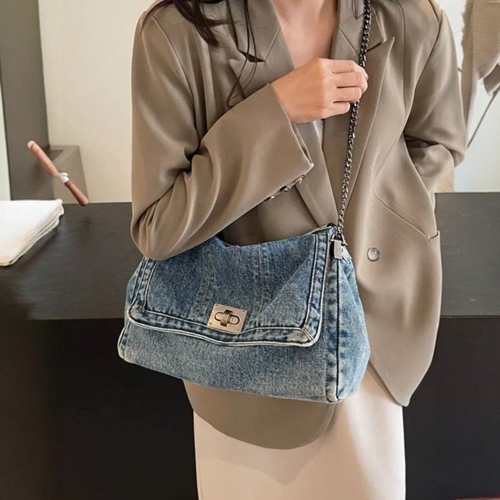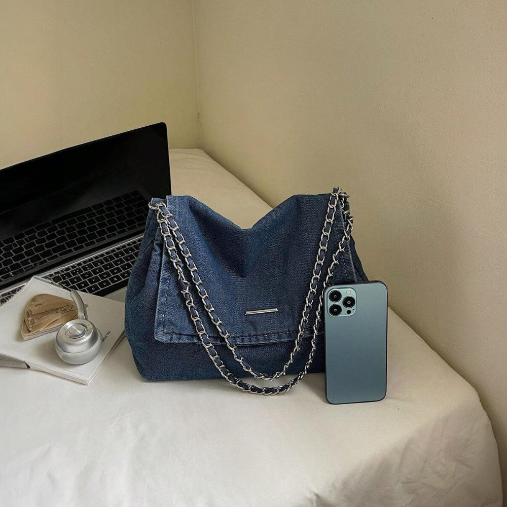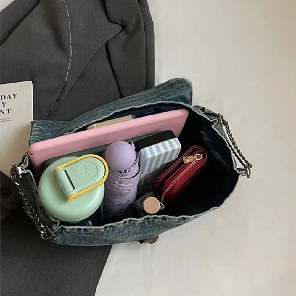 Nasza torba Grace jest wykonana z wysokiej jakości denimu, łącząc swobodny styl z trwałością. Zaprojektowana tak, aby była wystarczająco pojemna, łatwo pomieści Twoje niezbędne rzeczy: laptop, makijaż i codzienne akcesoria.